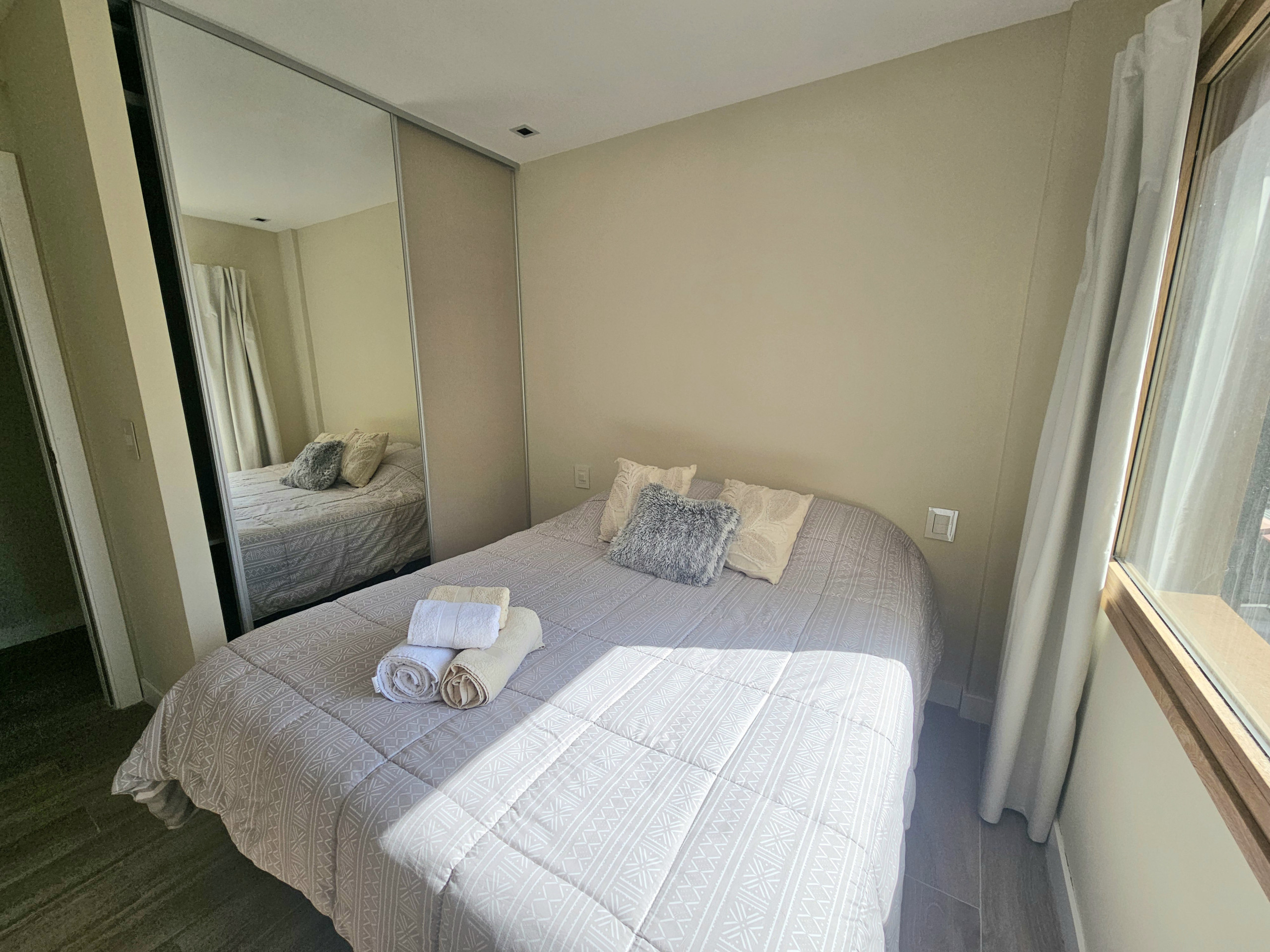 El departamento se encuentra en un edificio nuevo. Su ubicación es excelente, en una de las principales calles de Bariloche, a pocas cuadras del Centro Cívico, fácil acceso a los medios de transporte y cercanía a los principales paseos. El alojamiento decorado con mucho encanto para que disfrute de una cálida y acogedora estadía; cuenta con una habitación con cama matrimonial con posibilidad de hacerla 2 camas individuales, baño completo con bañera, cocina totalmente equipada con todo lo necesario para poder cocinar como en casa.