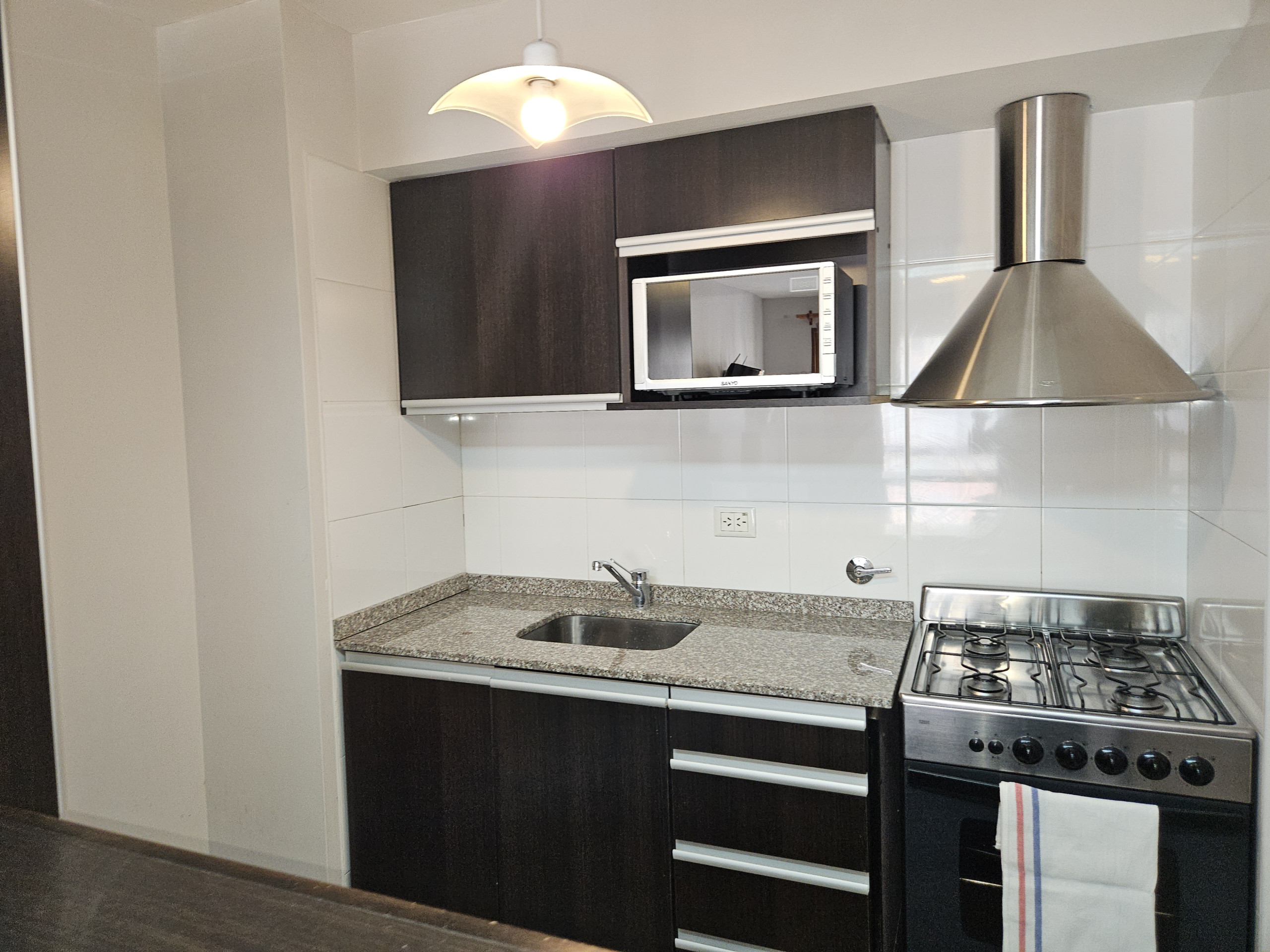 La cocina esta completamente equipada con: microondas, tostadora, pava eléctrica, heladera y todos los utensilios necesarios para cocinar como en casa, también cuenta con una plaza de estacionamiento cubierta dentro del mismo edificio.