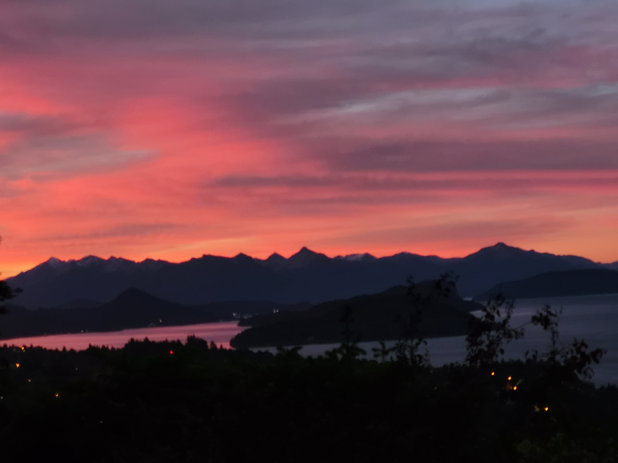 Cada amanecer regala una postal única del lago y las montañas, visible desde el living y desde el deck exterior.