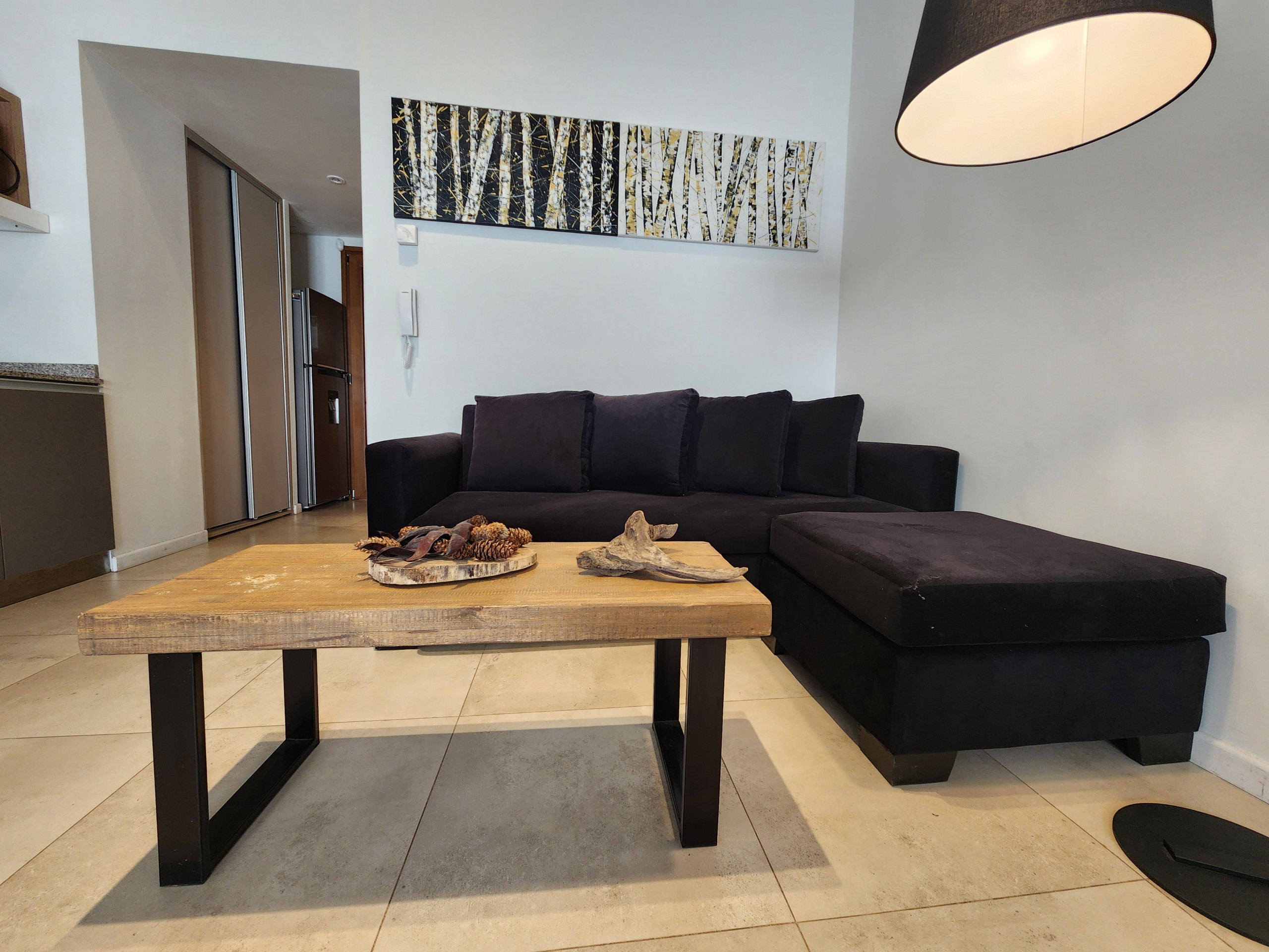El apartamento cuenta con una cama matrimonial y está equipado con todas las comodidades necesarias para una estancia confortable. Disfruta de conexión WiFi de alta velocidad, calefacción central para los días más fríos y una cocina americana completamente equipada con electrodomésticos como heladera, microondas, cafetera, tostadora y hervidor.